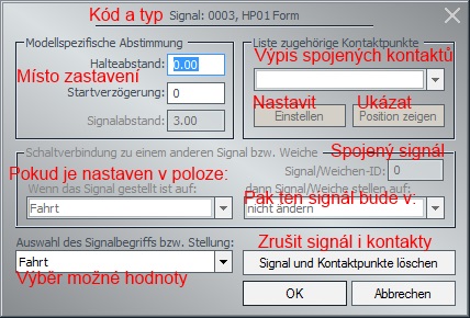Můžeme si zkusit přehazovat hodnotu. Hodnota "Fahrt" je "zelená" (Volno), hodnota "Halt" je "červená" (Stůj). Přehazovat lze i klikáním se SHIFTEM na 2D či 3D mapě.