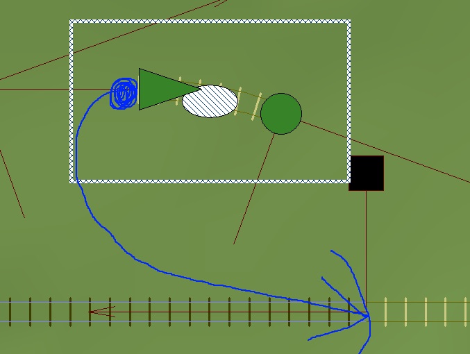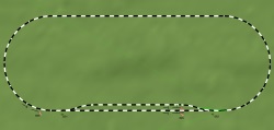 Připomínám - 3x rovná 60m kolej, pak 6x oblouk 30 stupňů s poloměrem 50m. A ještě jednou nahoře.