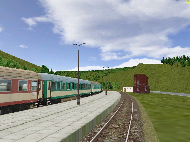EU07-536 zde zase pozor, musíte vyjet, aby vám postavili na kusou, jinak kolega, kterého střídáte, vám s vozy jede dál a vy už končíte ve stanicii! Na kusé se musíte otočit (přejít do kabiny), jinak kolega přehlídne návěst stůj a vykolejí na první vyhybce a končíte :-) Taky dávejte pozor na vozy, při vyšších rychlostech mají tendenci se rozpojit. Někdy příjde náhlý kritický bag ve hře a končíte, ikdyž ještě nemáte pocit, že je konec, nejednou se mi stalo, že jsem potkal vozy z rychlíku bez mašiny před sebou a když jsem je připojil, že je odvezu sunutím dál, tak sem zjistil, že jsou rozsekaný. :-( Takový náhlý bag na konečnou.